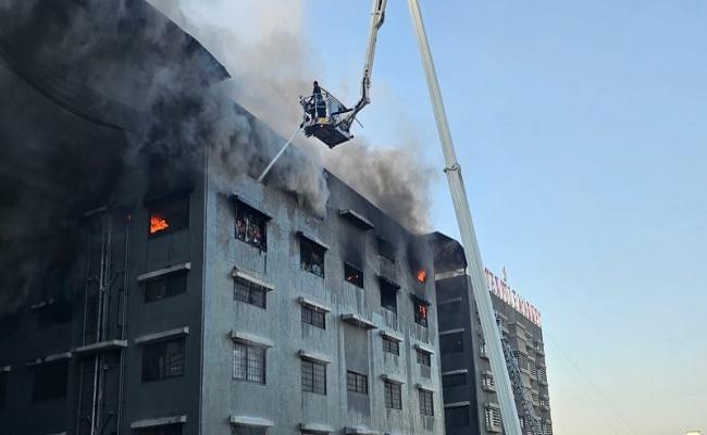 सूरत की राज टेक्सटाइल मार्केट की आग में करोड़ों का नुकसान, 5 फायरकर्मी घायल