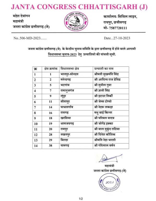 नई दिल्ली, 27 अक्टूबर। कांग्रेस ने तेलंगाना विधानसभा चुनाव के लिए शुक्रवार शाम को 45 विधानसभा सीटों पर अपने उम्मीदवारों की दूसरी सूची जारी की है। इस सूची में पार्टी ने जुबली हिल्स सीट से मो. अजहरुद्दीन को उम्मीदवार घोषित किया है जबकि पूर्व सांसद मधु गौड़ साक्षी को लाल बहादुर नगर सीट से मैदान में उतारा है। इसी के साथ कांग्रेस पार्टी तेलंगाना की 119 विधानसभा सीटों में से 100 पर अपने उम्मीदवार घोषित कर चुकी है।